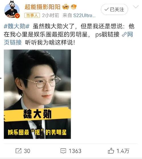 话说那天,魏大勋在直播间里和粉丝们互动得正欢,突然,他无意间透露了一个惊天秘密。这个秘密一出来,瞬间引发了网友们的热议,大家纷纷跑到网上去寻找那个视频,想要一睹为快。